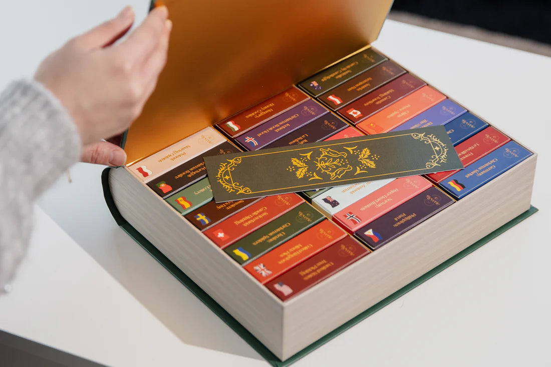 Hvert lille julepuslespil har 99 brikker (15 x 11 cm), og de 24 minipuslespil ligger i en fin samleæske på 35 x 25 x 7 cm, som ligner en stor flot bog.
