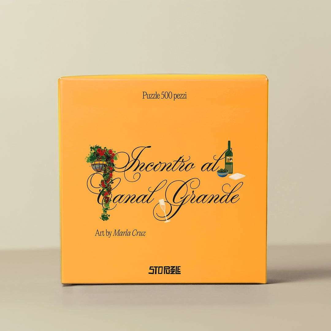"Incontro al Canal Grande" er et puslespil med 500 brikker, det tredje i den nye drømmende kollektion. Kunstneren er Marla Cruz, som vi allerede har samarbejdet med om puslespillene Tra i Due Golfi og La Magica Attesa.